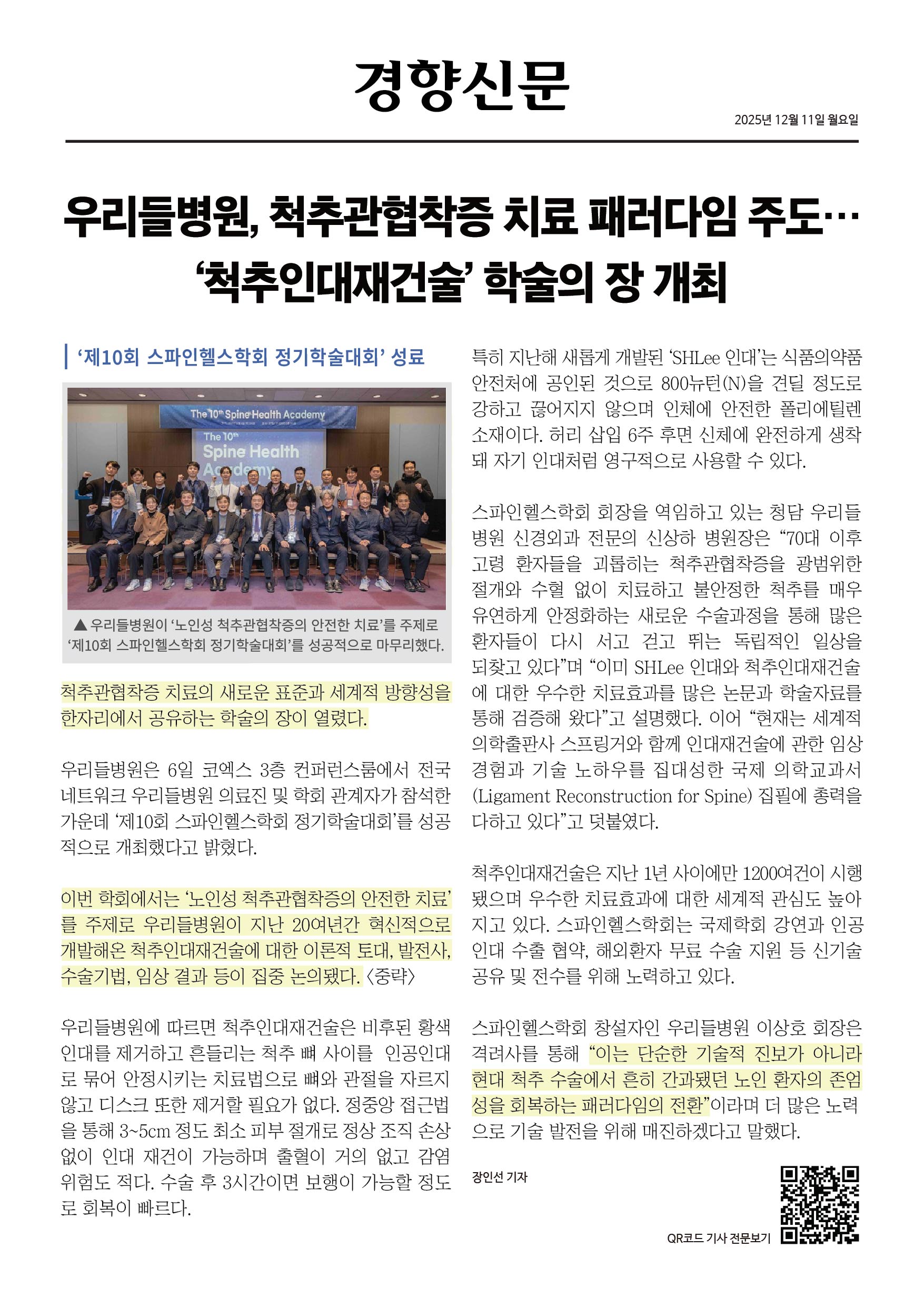 척추관협착증 치료의 새로운 표준과 세계적 방향성을 한자리에서 공유하는 학술의 장이 열렸다.