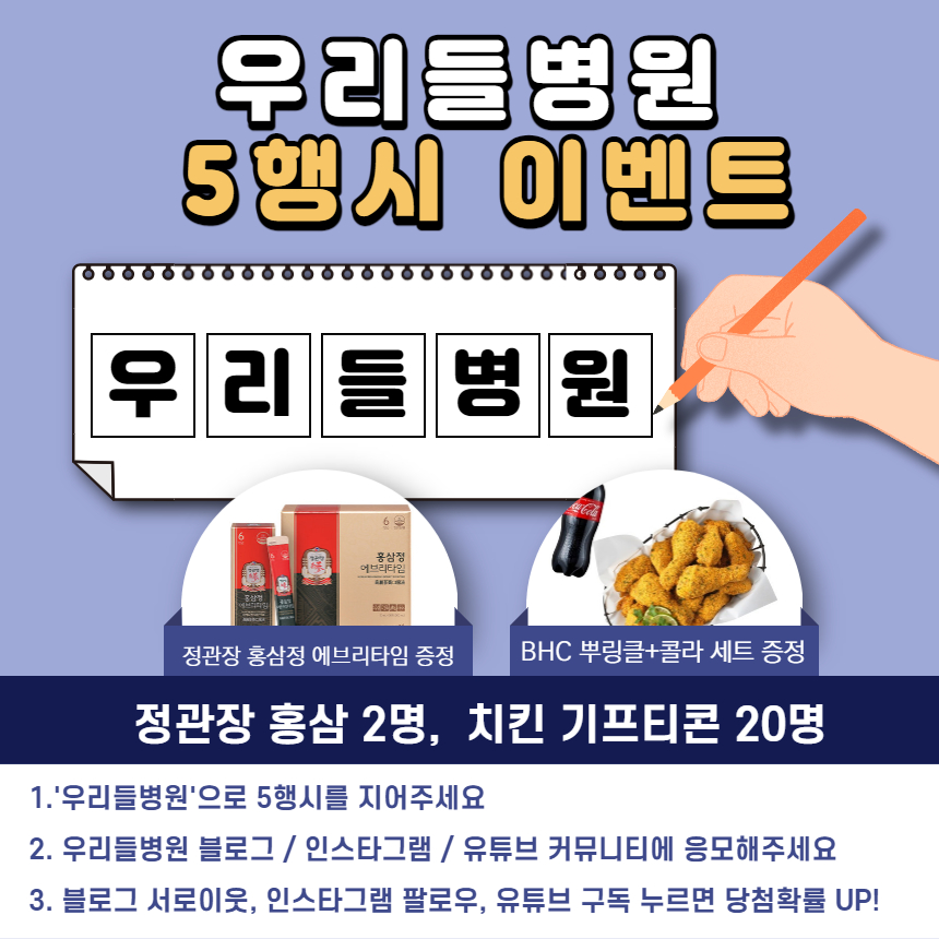 우리들병원 공식 SNS 채널 중 한 번만 응모해주세요.