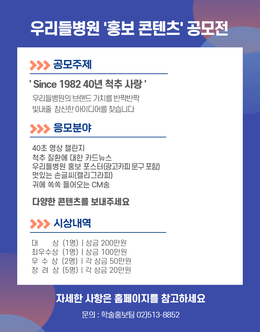 공모 주제는 'Since 1982, 40년 척추 사랑' 우리들병원에 대한 내용으로