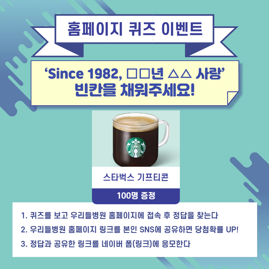 추첨을 통해 스타벅스 기프티콘을 100분께 드립니다.
