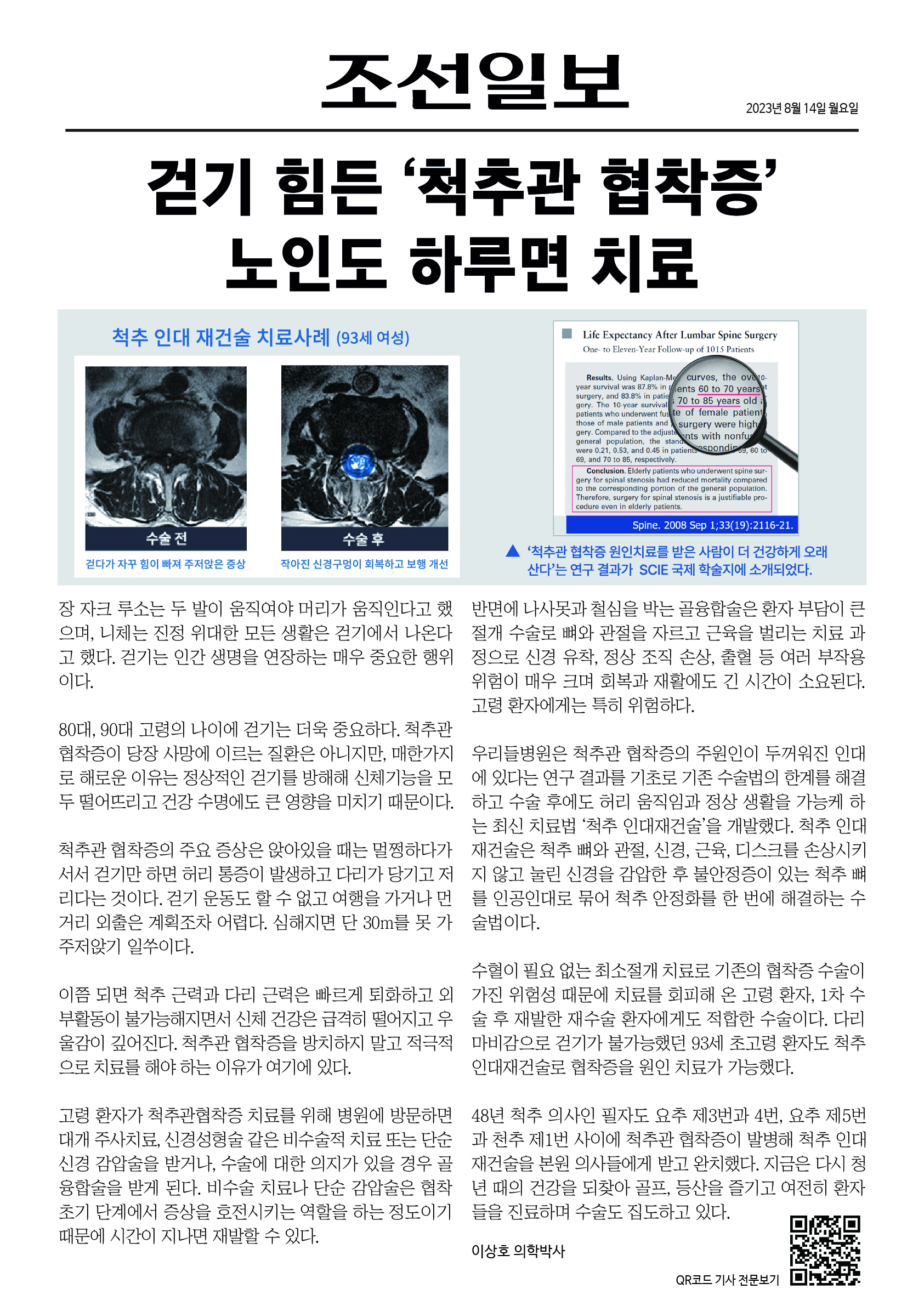 척추관 협착증이 당장 사망에 이르는 질환은 아니지만,