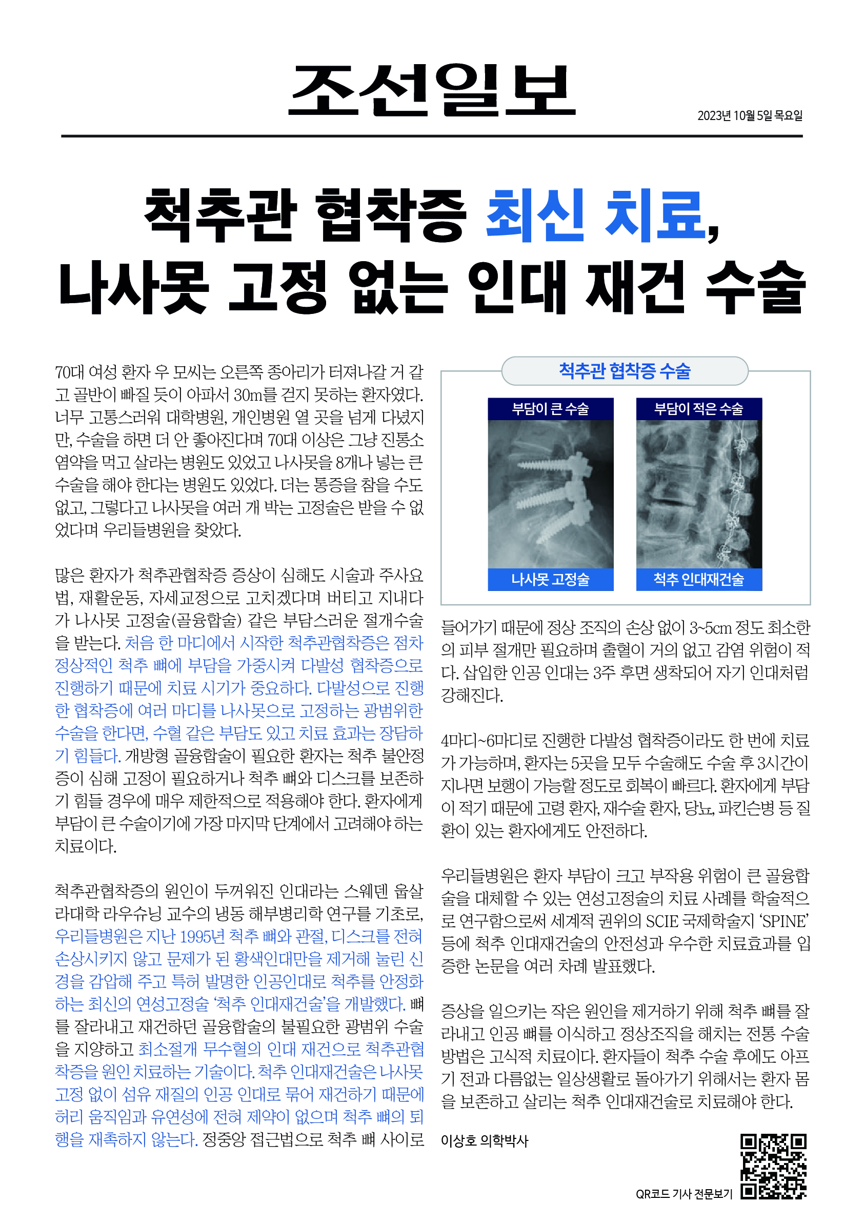 더는 통증을 참을 수도 없고, 그렇다고 나사못을 여러 개 박는 고정술은 받을 수 없었다며