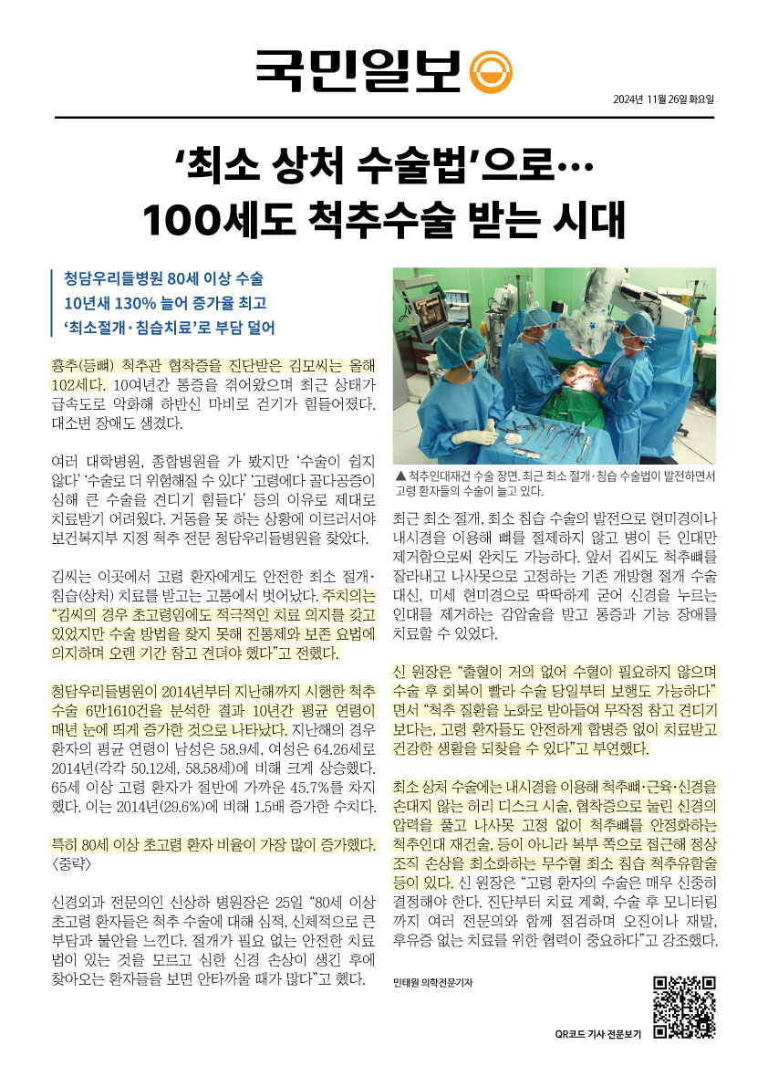 거동을 못 하는 상황에 이르러서야 보건복지부 지정 척추 전문 청담우리들병원을 찾았다.