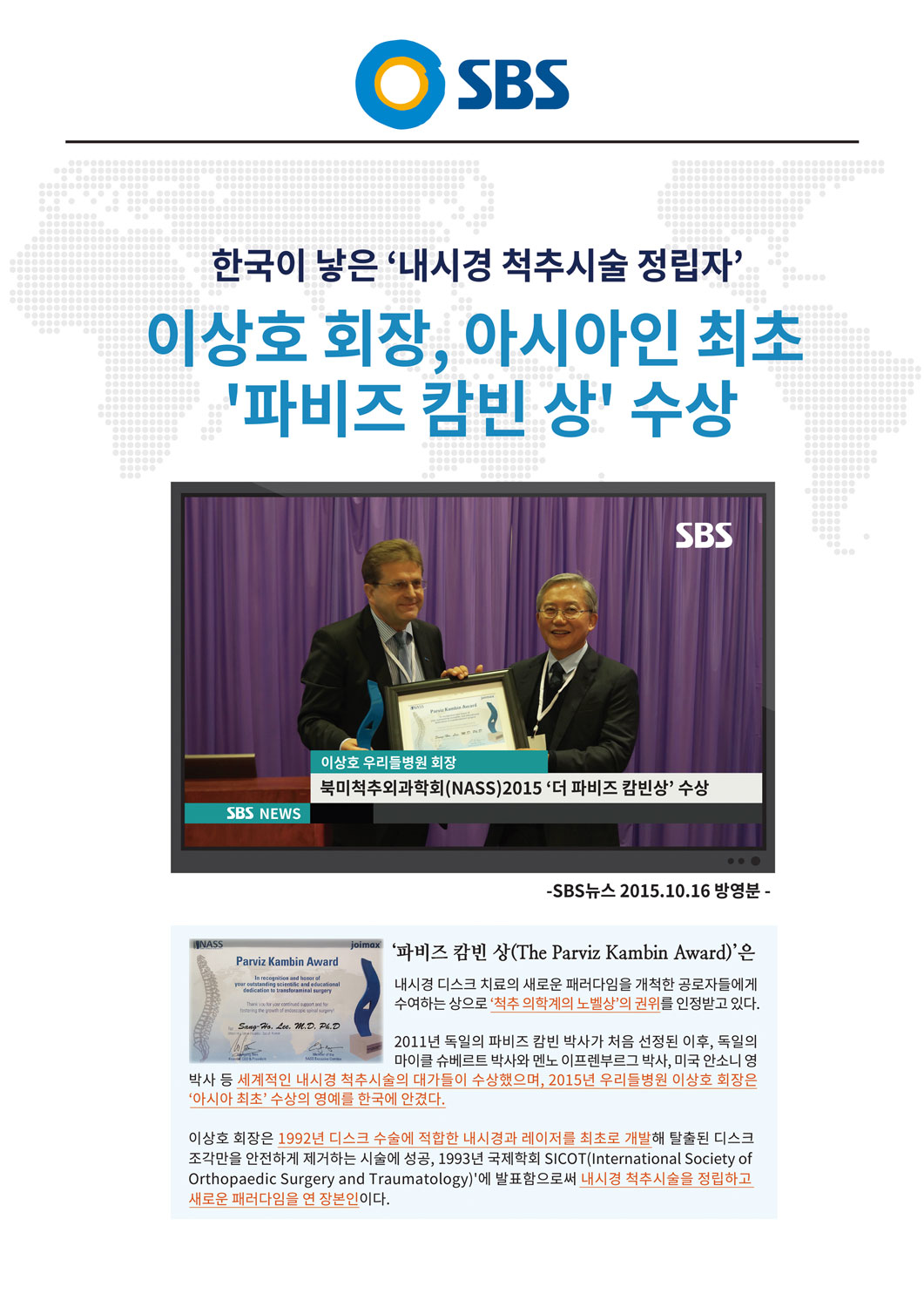 ‘더 파비즈 캄빈상(The Parviz Kambin Award)’의 골드상을 수상하는 영광을 안았다고 병원 측이 밝혔다.