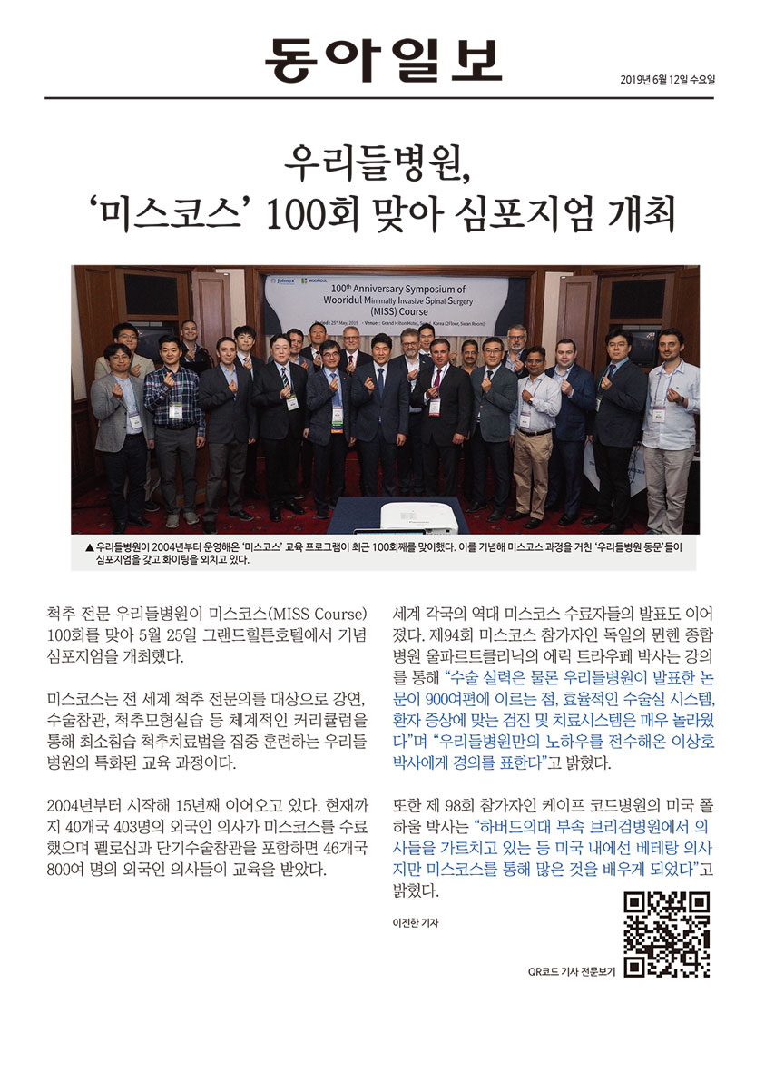 [동아일보] – 우리들병원, '미스코스' 100회 맞아 심포지엄 개최